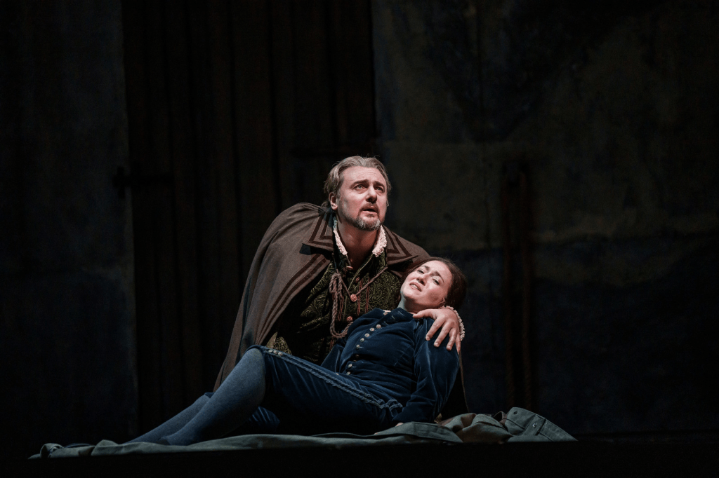 One of the most remarkable musical moments in this production is the duet between Gilda and her father in Act 1. Galoyan’s rendition of “Caro nome” is one of the most heartfelt and transcendent performances I have ever witnessed in a theater. Her voice carries a profound, dark, and sweet quality simultaneously, occasionally dropping to an almost whisper-like sound, as if scraping the silence. Gilda is portrayed with great care and detail as an innocent young girl in love, embodying all the pure and vibrant energies of life.
