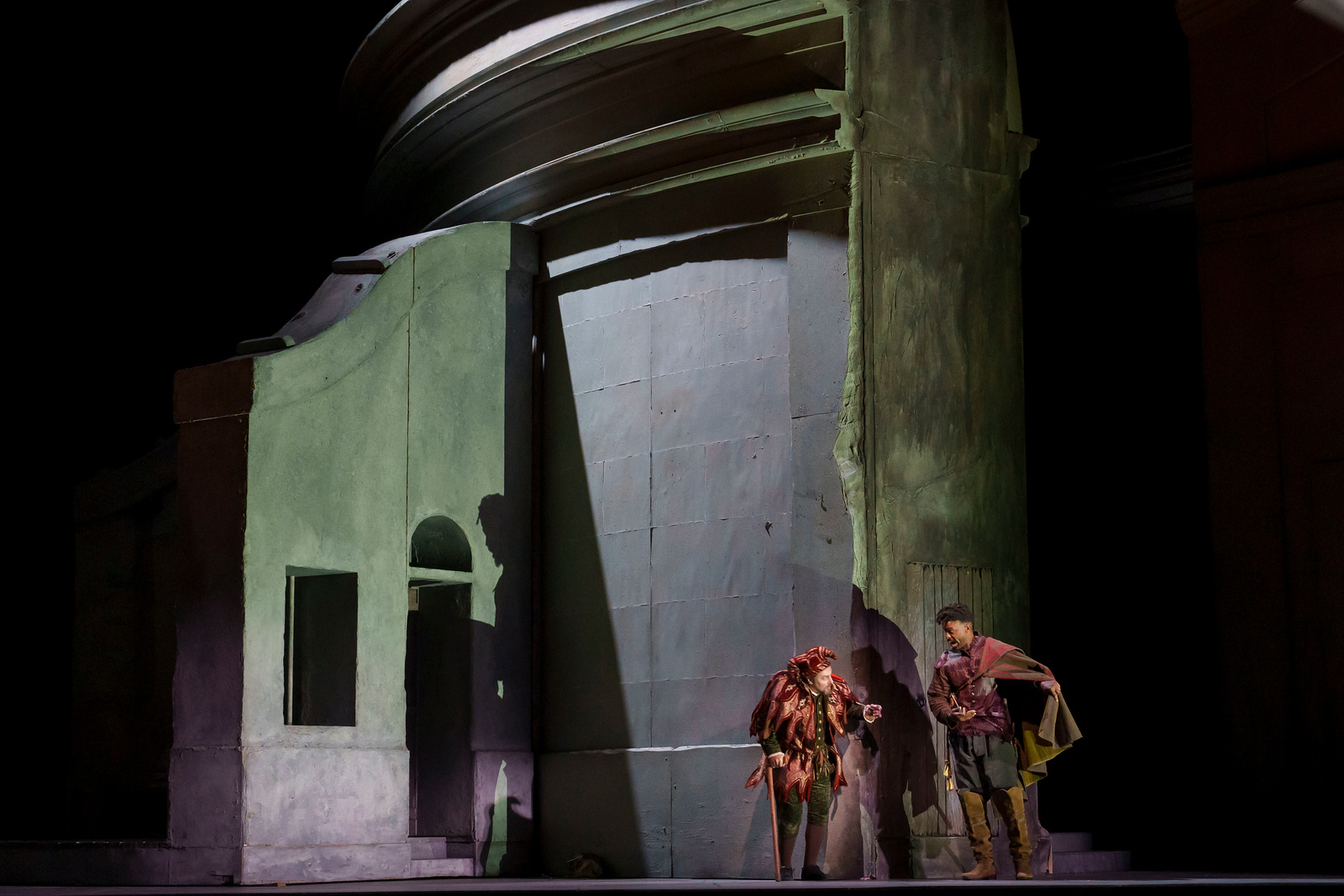 Rigoletto, in his misguided attempts, believes he is saving his daughter from the very macho behaviors he celebrates in others during public festivities. Meanwhile, the Duke thinks he can continue dishonoring other girls without facing any consequences. Monterone (portrayed by Romanian-American baritone Andrew Manea) curses both of them, introducing a dark and threatening order amidst their jokes and revelries. Gilda emerges as both the punishment for her father and the salvation for her lover through these curses: by dying, she takes the place of the Duke and saves him, even though he is not worthy of her sacrifice.